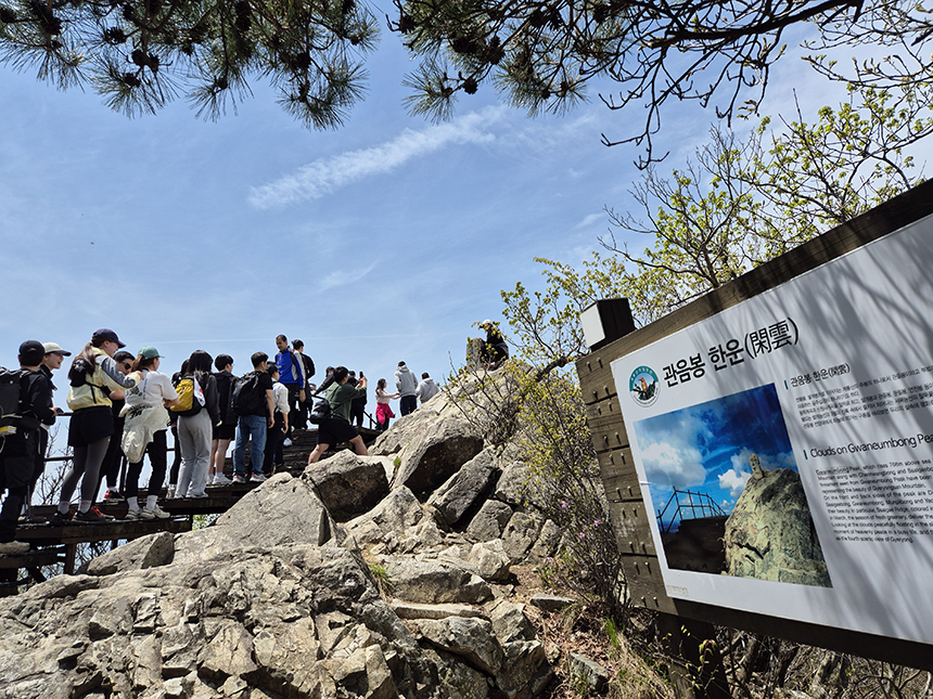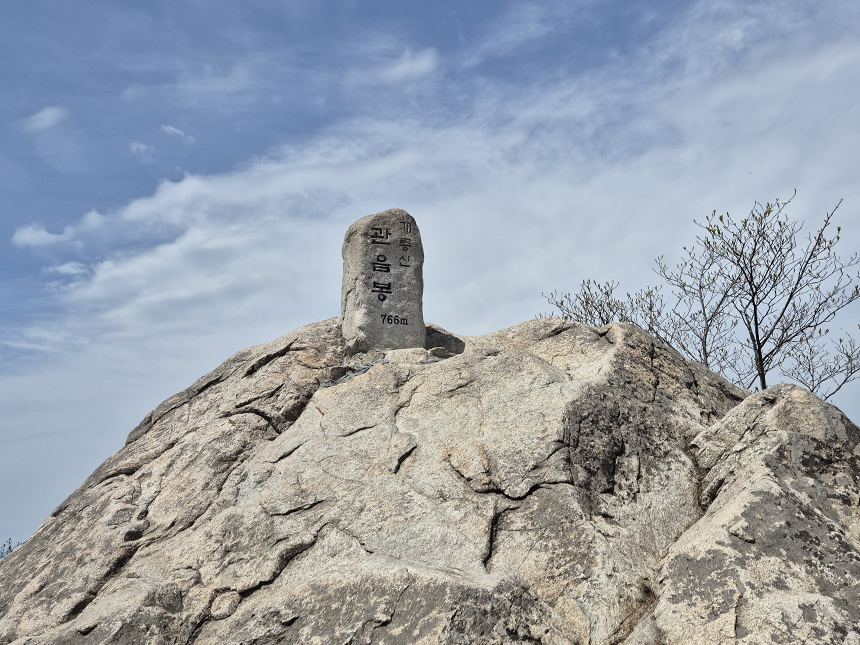 드디어 관음봉에 도착했어요. 언제부터인지 관음봉 정상에서는 등산 기념 촬영을 하기 위한 대기줄이 생겼네요. 오늘은 날씨가 좋고 단체 등산객이 많아 유독 대기줄이 길어진 것 같아요. 관음봉에서 잠시 휴식을 취하며 지참한 도시락과 음료로 에너지도 보충을 합니다.