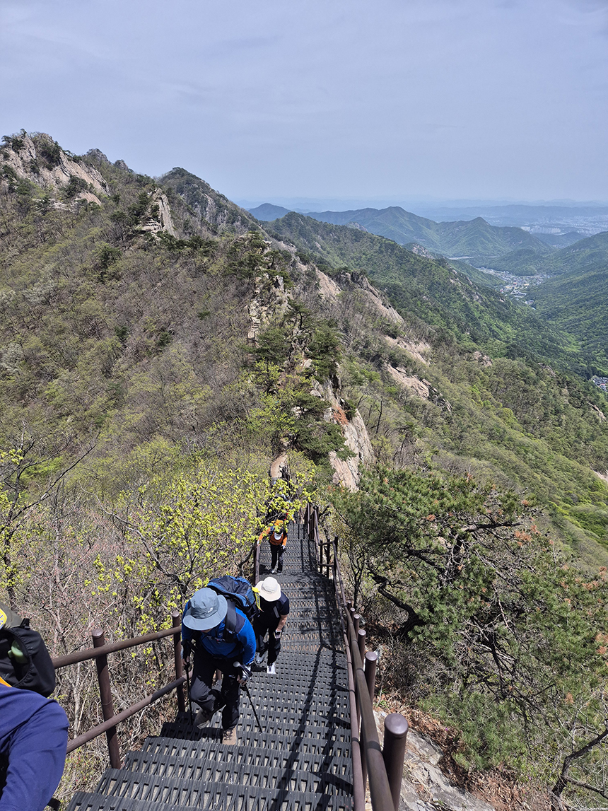 한 계단 한계단 오르다 보면 고개는 자꾸 앞만 보게 되고 숨은 헉헉 거릴 정도 경사의 계단입니다.