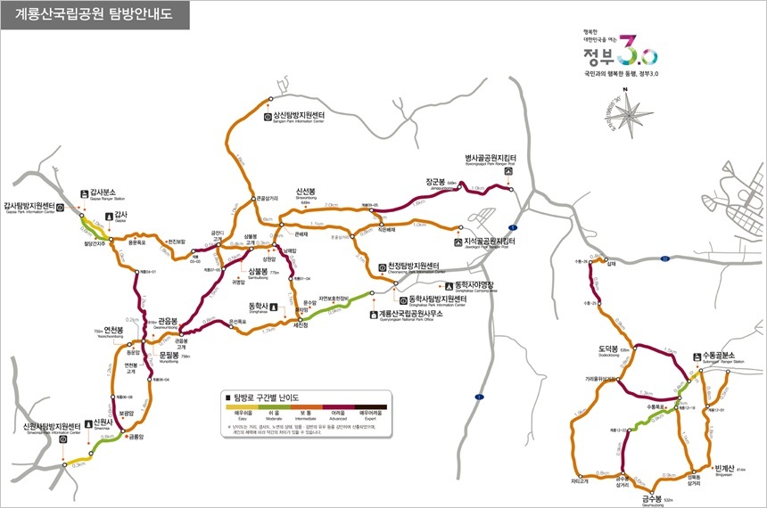 ※ 계룡산 등산 및 탐방 지도와 코스, 난이도를 자세히 볼까요?