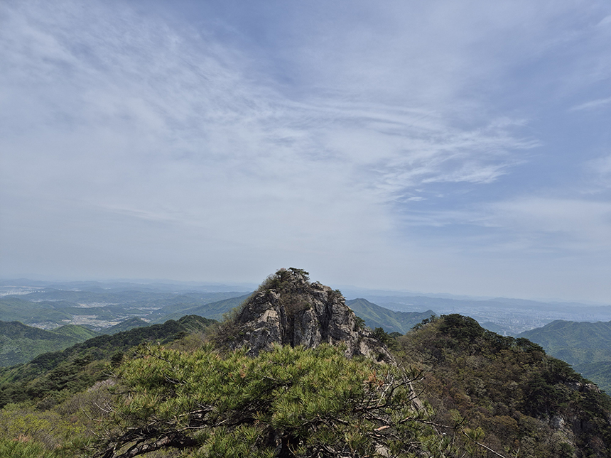 관음봉으로 향하는 중 되돌아본 삼불봉과 계룡산 능선 줄기입니다. 모처럼 날씨가 너무 좋아 풍경이 너무 좋네요~