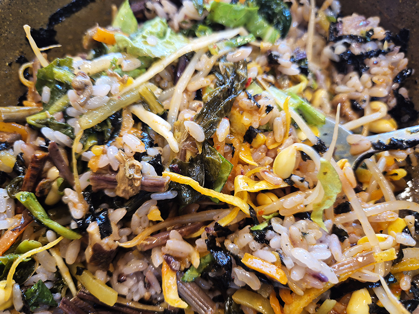 사실 관광지 주변 음식점은 잘 들르지 않고 차라리 조금 떨어진 곳이나 시내에서 식사를 하는 편인데.. 뭉치네는 꼭 들르게 되네요. 뭐 이제 2번째이긴 하지만 다른 음식점에 들어갈 생각조차 안 했으니까요. 산채비빔밥 반찬은 거의 나물로 이루어져 있고 아마 밥보다 나물이 더 많을 거예요.