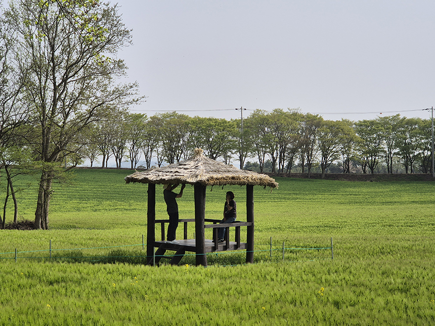 밭 가운데 자리한 원두막 풍경도 참 마음을 안정되게 하고 늘 허덕이듯 바쁘게만 지내며 잊고 있었던 마음의 여유를 찾아보게 되네요. 보리밭 풍경이 궁금했건만 유채꽃까지 만개하여, 오길 참 잘한 것 같아요.
