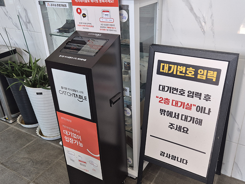 입구 앞에 놓인 테블릿에서 예약을 합니다.
