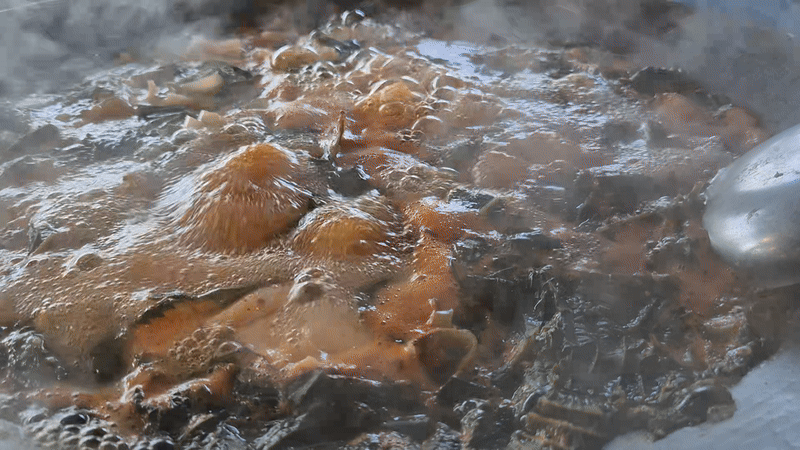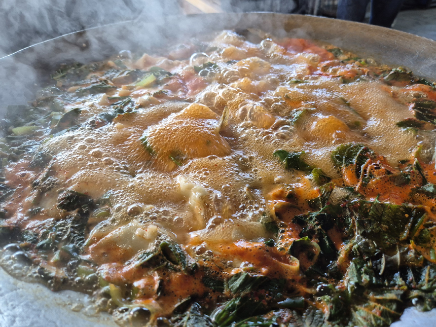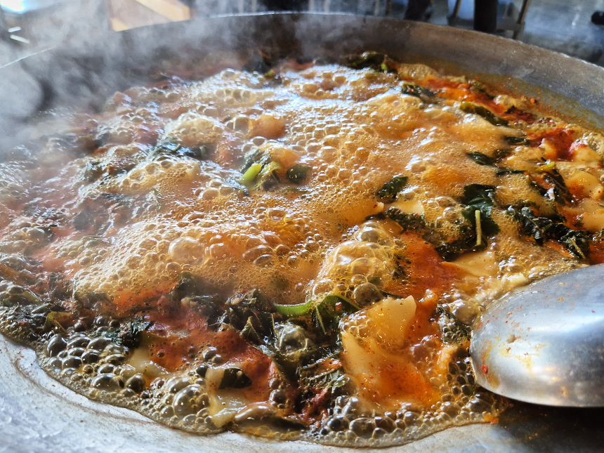탕이 끓기 시작해도 아직 먹을때가 되진 않았어요. 때가 되니 수제비 부터 먼저 드시라고 하시면서 직접 불조절도 해주십니다. 걸쭉한 국물이 보글보글 끄는게 참 맛있어 보이죠?