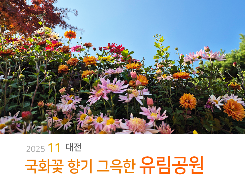 가을이 되면 대전 유성에서는 어김없이 국화축제가 열리죠. 이미 축제는 끝이 났지만 여전히 국화 전시가 이어지며 많은 시민들이 발걸음을 멈추고 사진과 여운을 남기고 있어요. 유림 공원의 가을 국화 풍경을 함께 느껴볼까요?
