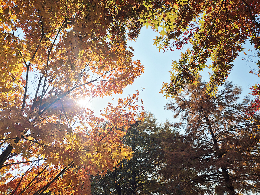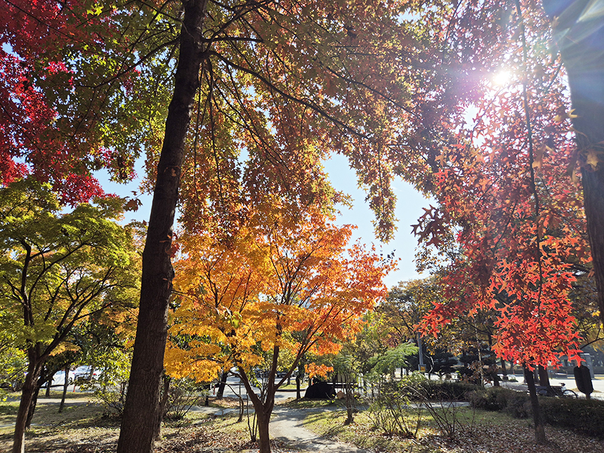 가을이 완연해지는 한밭수목원은 마치 물감을 흩뿌린 듯한 색감으로 물들어갑니다. 붉게 물든 단풍나무 잎 사이로 햇살이 스며들며 가을의 절정임을 알려줍니다. 도심 속 한가운데서 이렇게 가을을 느낄 수 있다는 거.. 참 좋아요.