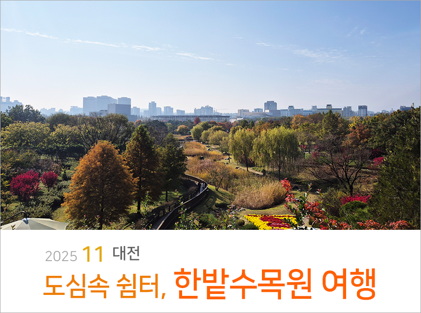 이번에는 가을이 깊어가는 대전의 도심속 쉼터, 한밭수목원에 다녀왔어요! 산책로를 따라 천천히 걸으며 눈으로 담아 온 생생한 가을 풍경을 함께 느껴볼까요?