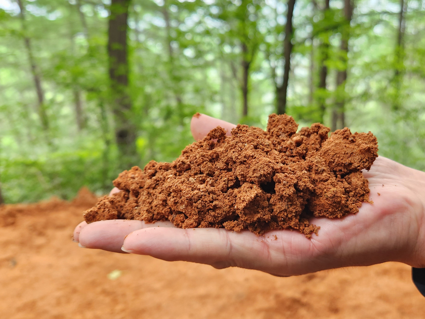 황토를 쌓아 놓은 곳에서 한주먹 만져보니 촉촉하며 부드러운 느낌이 드네요.