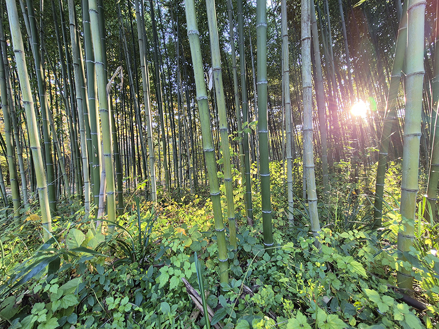 넘어가는 저녁 햇살이 대나무 숲사이로 스며들며 대나무숲 특유의 운치가 느껴집니다.