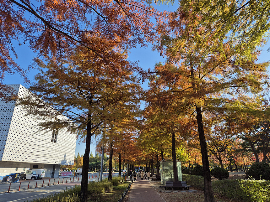 시민광장 좌우로 메타세쿼이아길을 따라 걸어들어갑니다.