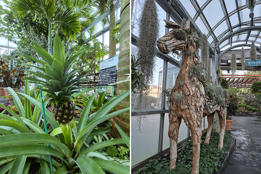 열대 과일 뿐만 아니라 국내에는 서식하지 않는 식물들과 꽃들도 피어 있어 함께 보시면 좋을 것 같아요.