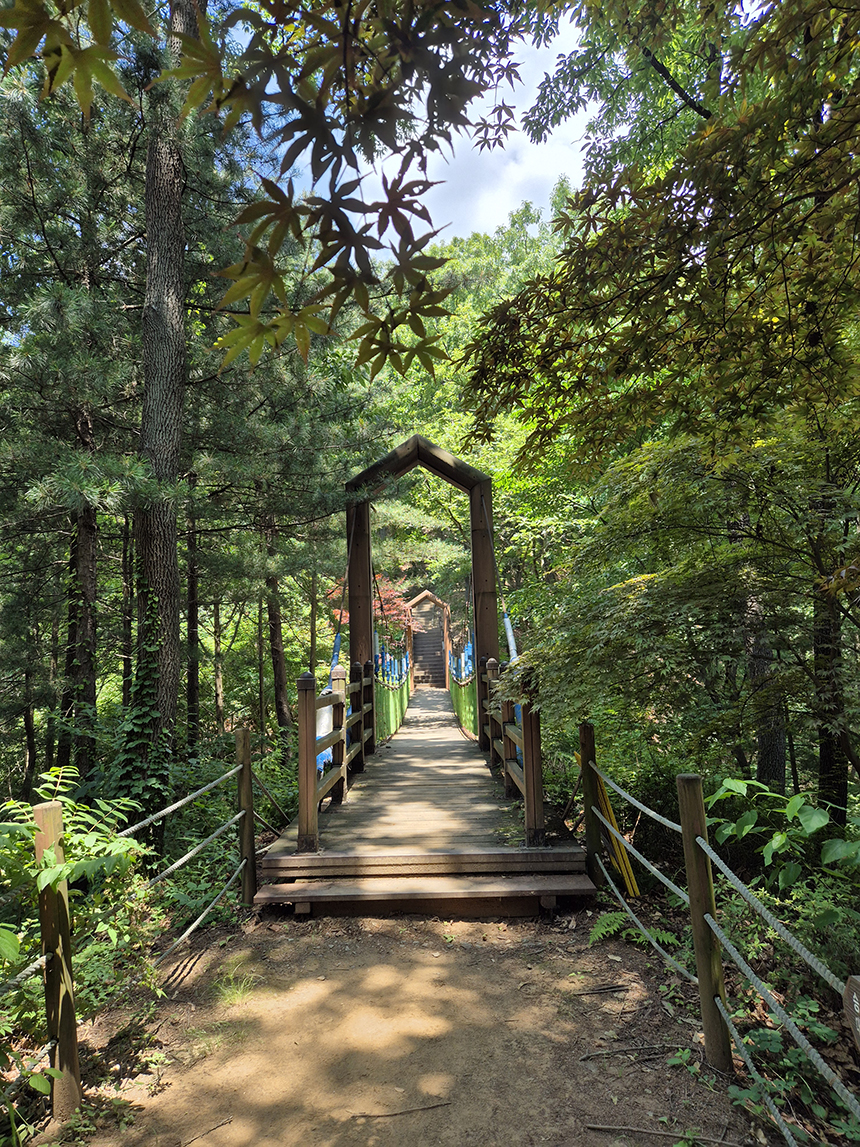 통일의 길은 말 그대로 등산로입니다. 통일이 쉽지 않지만 꼭 이루어야 할 숙명처럼 등산도 쉽진 않지만 정상에 서면 새로운 풍경을 보여주죠.. 능선을 따라 걷다보니 이런 출렁다리도 만나게 됩니다. 좀 짧긴 하네요.ㅎ