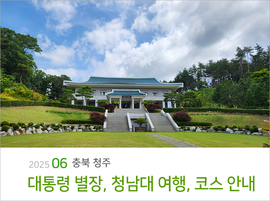 손대지 않은 자연속의 일부처럼 푸른 대청호와 어우러진 수려한 풍광을 품은 청남대, 대통령 기념관과 별장(본관) 전시로 대통령의  휴양 모습과 일상을 접해볼 수 있고 대청호 순찰로를 따라 조성해 청남대의 전망과 풍광을 즐길 수 있는 트레킹 코스가 있는 청남대를 한번 걸어보시기 추천드려요.