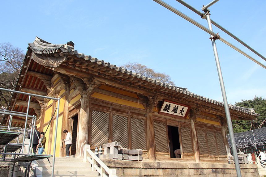대웅전은 단층 건물로, 그 규모는 크지 않지만 안정감 있는 모습과 화려하지 않지만 단정하면서도 은은한 멋이 돋보입니다. 또한, 대웅전 내부에는 석가모니불을 중심으로 보살상들이 배치되어 있어 불교적 신앙의 중심 역할을 합니다.