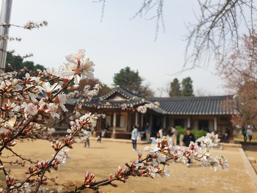 고택 주변으로는 벚꽃이 활짝 피어 벚꽃을 즐기며 고택도 함께 둘러보는 가족과 연인, 멀리서 단체로 찾아오시는 분들이 계시네요.