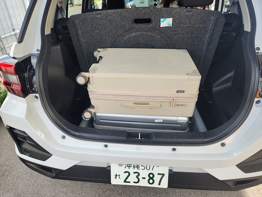 트렁크 용량이 생각보다 크지 않아서, 일부는 테트리스처럼 짐을 실었다고 하더라고요. 하지만 우리는 도저히 그렇게는 안 되어서, 스페어 타이어 공간을 이용했더니 24인치 캐리어 2개는 충분히 실을 수 있었고, 그 위에 작은 캐리어 하나는 더 실을 수 있을 정도입니다.