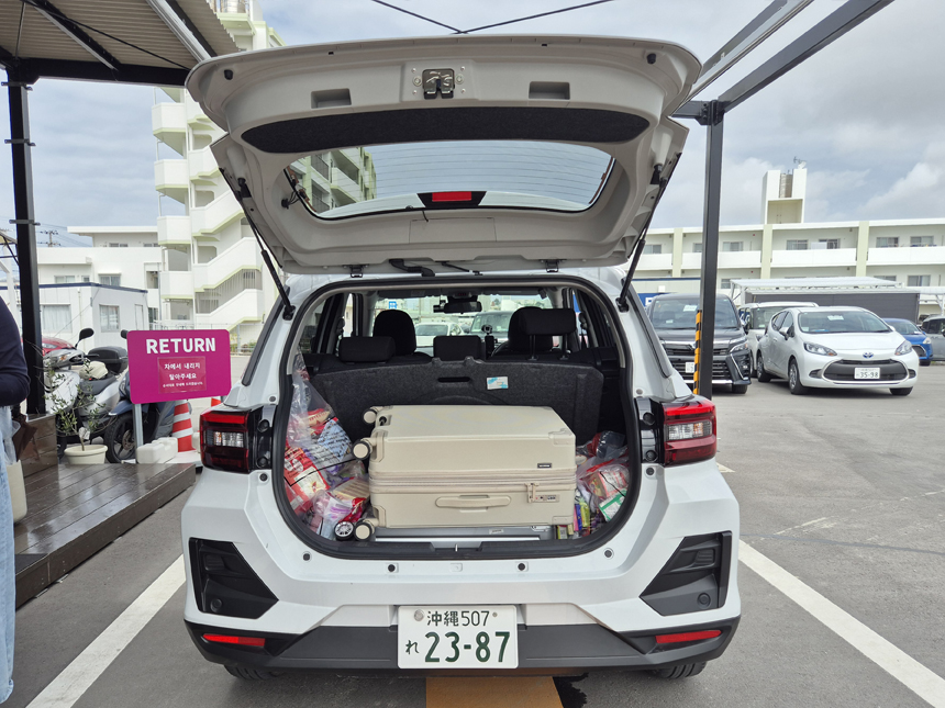 5인용 도요타 라이즈는 4명이 타기에는 적당하지만, 5명이 타기에는 다소 좁을 것 같아요. 경차보다 조금 큰 차 느낌이었고, 실내는 그렇게 좁지는 않지만 트렁크 용량이 다소 작은 편이었습니다. 실제 차량을 보니 실내와 외관 모두 깨끗했으며, 실내에서는 새차 특유의 냄새도 느껴졌습니다.