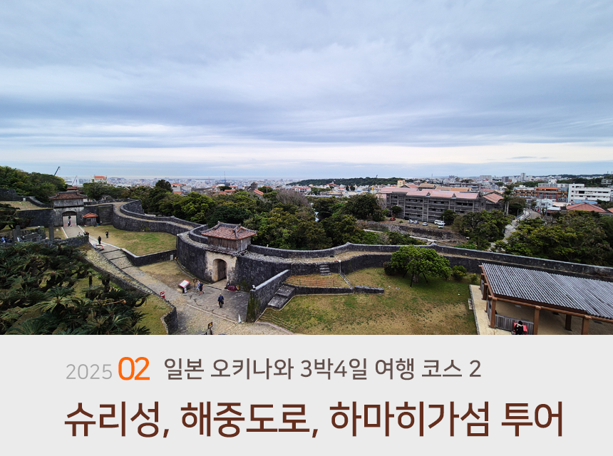 2일 차 첫 번째 코스로 슈리성, 해중도로를 거쳐 하마히가 섬 투어를 시작합니다.