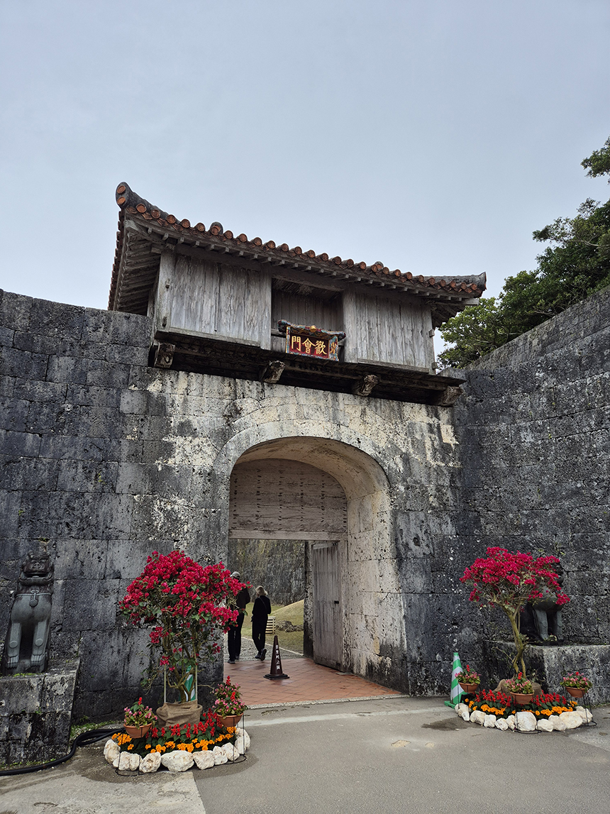 슈리성은 어떤 곳일까요? 많은 분들이 찾는 오키나와의 명소로 슈리성은 14세기 경 중국과 일본의 문화가 혼합된 성으로 류큐왕국 최대의 목조건축물입니다. 슈리성은 국왕과 가족이 거주하는 왕궁인 동시에 왕국의 통치 행정 기관인 슈리 왕보의 본부이기도 합니다. 이 문은 오키나와 전투에서 파괴되어 1958년에 복원된 슈레이문입니다.