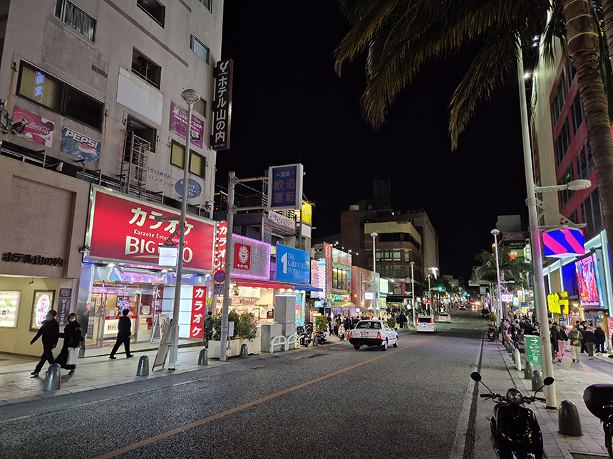 우미카지테라스에서 나와 저녁 식사를 할 요량으로 찾은 국제거리는 화려한 조명과 시끄러운 음악들, 젊음을 뽐내듯 수많은 사람들이 어우러진 시끌벅적한 번화가네요.