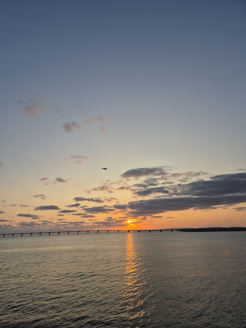 서서히 넘어가는 햇살에 서쪽 하늘은 붉게 물들어가고 그 노을 위로 군용기도 굉음을 내며 훈련이라도 하듯 날아오릅니다.