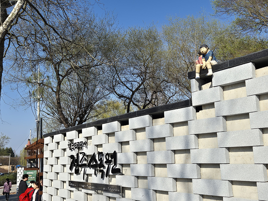 수목원 출입구 담장위에 앙큼한 꼬마 인형 여럿이서 재미난 표정으로 올려져 있어 올려다보니 정형적인 담장 장식과 극히 대조적으로 우스꽝스러우면서 자연 풍경과 묘하게 어울리네요. 전주수목원은 공기업에서 운영하는 유일의 수목원으로 사회공헌활동 차원으로 비영리로 운영하는 수목원인 만큼 깨끗하게 이용하고 훼손은 하지 말아야겠죠?