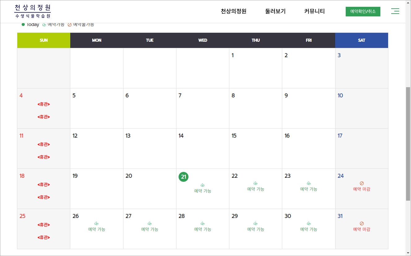③ 원하시는 날짜의 예약이 가능한지를 확인하신 후 날짜를 클릭합니다.