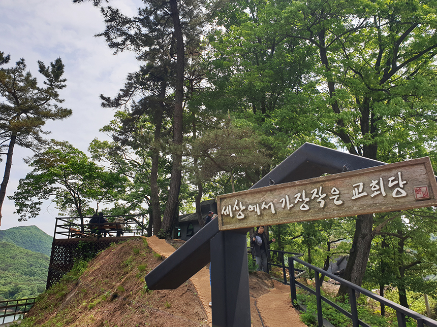 대청호를 마주하고 있는 "세상에서 가장 작은 교회당"...