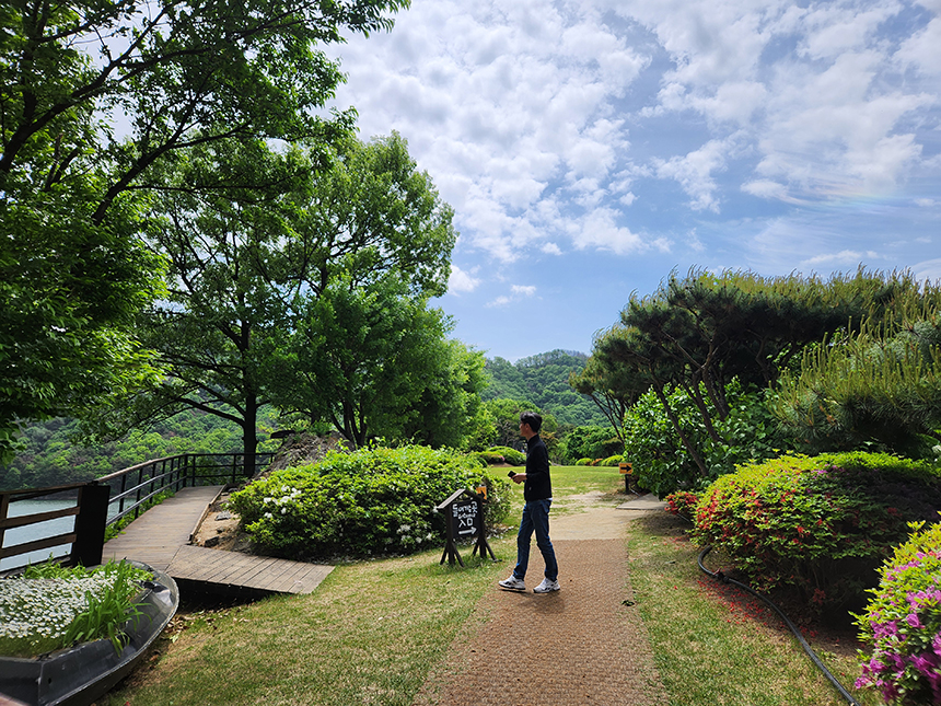 꽃이 핀 정원을 걷듯 한적한 듯 여유롭게 고민 없이 그냥 걷기만 합니다. 푸른 대청호와 연초록 새잎들, 파란색 하늘... 눈앞에 펼쳐진 풍경이 모든 근심과 고민을 지워주는 듯 기분이 상쾌해집니다.